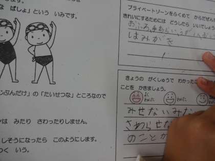 性に関する指導で,「せいけつな身体」や「プライベートゾーン」について学習をしました。