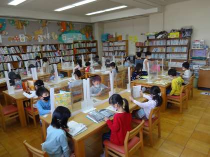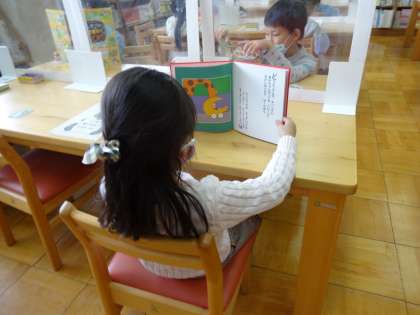 図書室で静かに読書です。