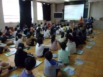 10月18日(月)総合的な学習の時間で防災についての学習を進めています。今回,伏見消防署の方や南浜消防分団長さんにゲストティーチャーに来ていただきました。伏見南浜の地域で起こる自然災害にどのようなものが多いのかや,被害が出ないようにするためにどのような対策をしているのかについてお話をしていただきました。