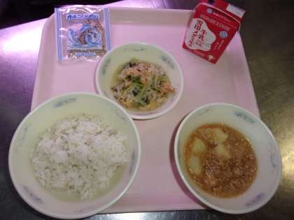 「じゃがいものそぼろにはとろとろしていて,ごはんとよくあいました。切干大根のにつけは甘くてとてもいい味でした。いつもおいしいきゅう食をつくってくれてありがとうございます。」(3年生)