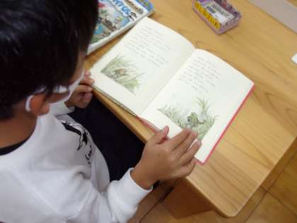 国語科で学習している「お手紙」の作者,アーノルド・ローベルさんの作った絵本を読んでいます。「お手紙」だけでなく,たくさんの作品に親しむことで,この作者の作品のよさに気づくことができます。