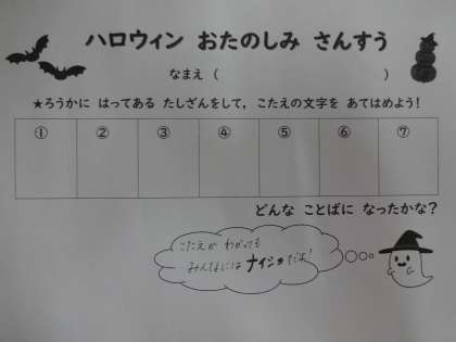 ハロウィンなので,算数クイズオリエンテーションをしました。