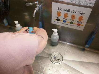 今朝の様子をこっそり見に行くと・・・教室では音楽に合わせてブクブクうがいをしっかりしていました。また手洗い場でも順番を守って,コップを洗っていました。