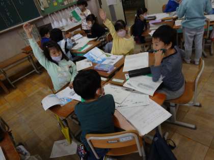 「ぼくの読む場所は〇〇のところです。」と教科書を見せながら紹介します。