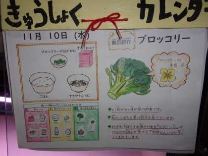「ブロッコリーのおかかににつかっていたブロッコリーは私の好きなやさいなので,とてもうれしく食べられました。すきやきはとても温かくて,ほっぺがおちそうなくらいおいしかったです。いつもおいしいきゅう食を作ってくれてありがとうございます。」(3年生)