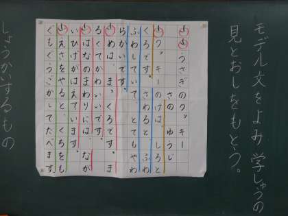 モデル文から,何を書けばいいのか,どういう視点をもてばいいのかをみんなで考えました。