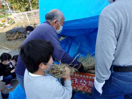待ち時間や,休み時間には,落ちているお米を拾いに行っている姿もありました。「自分で手で剥いてごらん。」と声を掛けていただき,剥いたお米を嬉しそうに集めている子もいましたよ。
