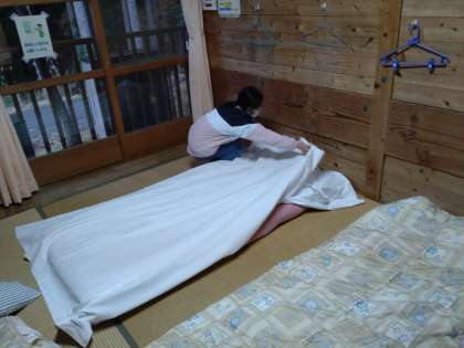 食事の前に寝具の準備をしました。