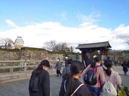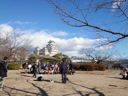 姫路城を後ろにクラス写真撮影