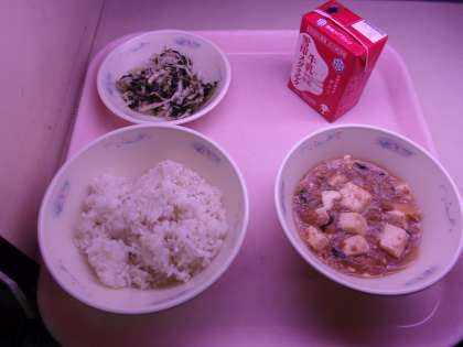 「きょうのきゅうしょく,マーボどうふがおいしかったよ。ありがとう。」(1年生)