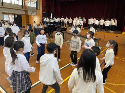 学童大音楽会に向けた動画撮影前の最後の練習です。パートごとに音を合わせています!