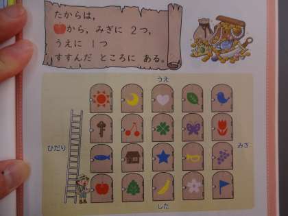 「💛←←↓↓↓」など,お友だちに問題を出し,解き合っています。