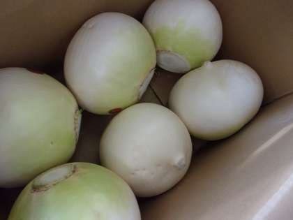 聖護院だいこんは,みんなが想像するだいこんとは違う形をしています。だいこんは太く長いですが,聖護院だいこんは丸いかぶのような形をしています。