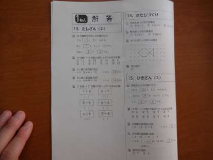 宿題を自分の力で綴じています。