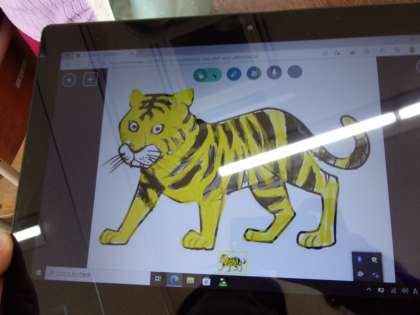 たくさんのカードが集まりました。集まったカードには,自分で塗り方を決めて,丁寧に色塗りをしています。