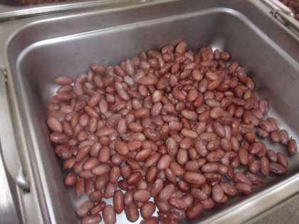 金時豆の甘煮は,給食室にあるスチームコンベクションオーブンを使って作りました。