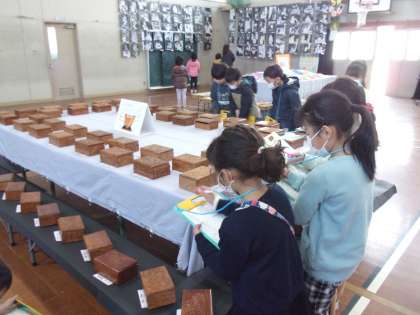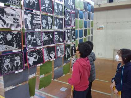 造形展の鑑賞をしました。造形展では,普段見られない他の学年の人たちの作品も見られるので,とてもワクワクしながら見ていました。