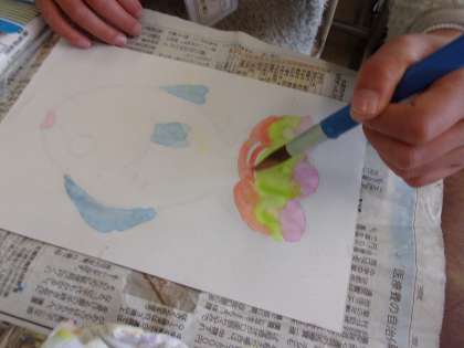 もうすぐ6年生も卒業です。2年生は,2年生になって学習した絵の具を使って,きれいに魚の色を塗り,可愛い魚をたくさんつくっています。