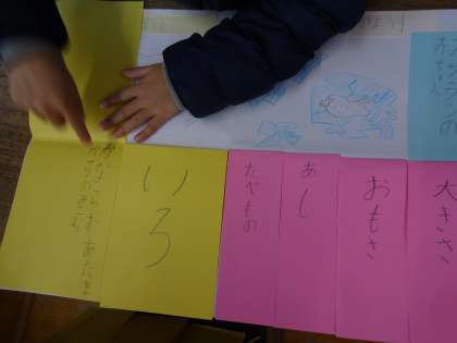 国語科「動物の赤ちゃん」の学習で,つくったアニマルブックを使って,動物のすごいぞを交流です。