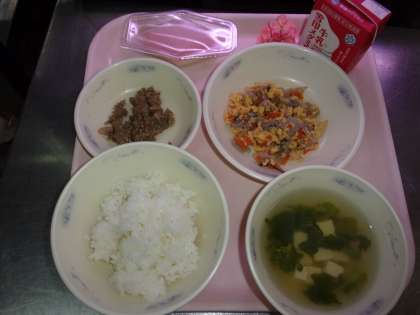 今日は“さばそぼろ”もありましたね。“さばそぼろ”は京都の上の方,丹後地方でよく食べられています。しっかりと味もついていて,ごはんがおいしく食べられましたね。
