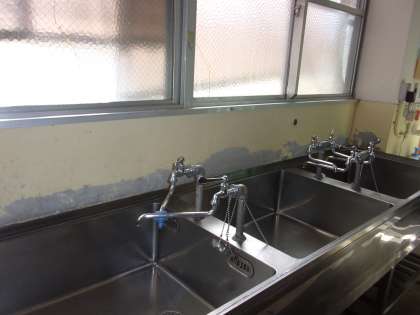 この前は「回転がま」を新しくしましたが,今日は管理用務員さんに給食室のかべをきれいにしてもらいました!!