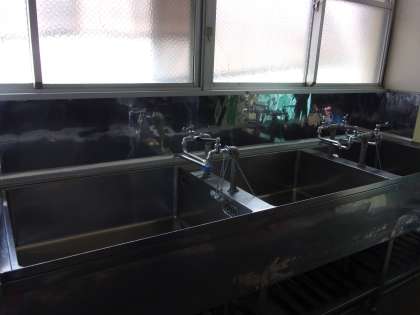 写真のように壁にステンレスの板をはって,とてもきれいになりました。