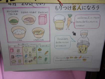 「いものこじるの里いもがおいしかったです。まいにちおいしいきゅうしょくをつくってくださってありがとうございます!さばのたつたあげがとてもおいしかったです。」(3年生)