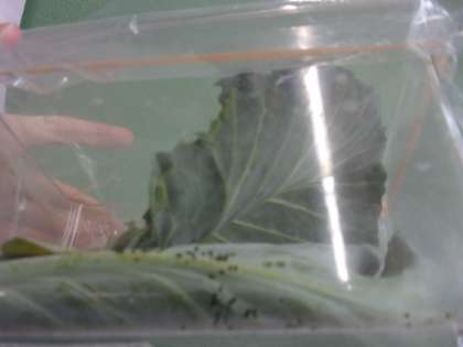 教科書にも,毎日フンを取り除き,キャベツの葉を取り換えることが書かれています。早速,畑へ行って,虫かごの中をきれいにしてくれました。また,月曜日から,観察を続けましょう。
