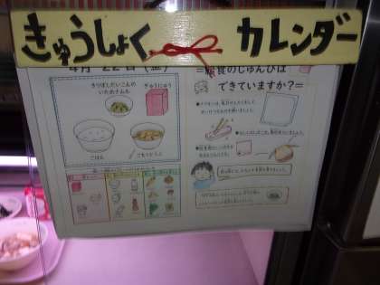 「きのうのきゅうしょくおいしかったよ。またきょうもがんばってね。」(1ねんせい)