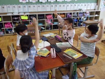 国語科で「もっと知りたい,友だちのこと」の学習を進めています。自分の好きなものや頑張っていることについて紹介する文を書き,発表をしました。聞き手は,それに対して,聞いてみたいことを考え質問をします。