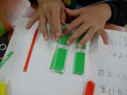 数え棒を操作しながら,計算の仕方を説明します。