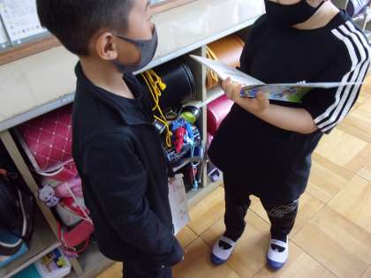 外国語活動では,友だちに気分を尋ね,その気分の欄に名前を書いていきました。どの気分の人が多かったかな?給食時間前だったからか,”I'm hungry."の人が多かったようです。