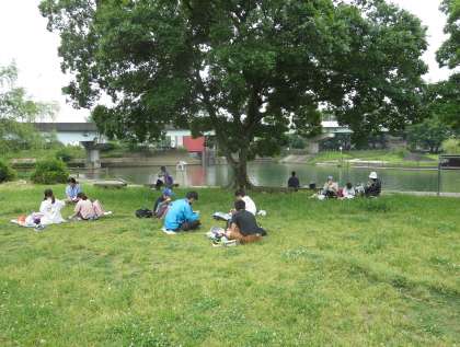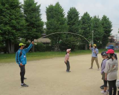 伏見港公園では,みんなで転がしドッチボールや大縄とびをしたり,遊具で遊んだり,友だちと仲良く楽しく活動することができました。お楽しみのお弁当は,川の景色を見ながら,芝生の上で食べました。そのあとは,芝生の上でゆっくりしたり,だるまさんが転んだをしたりしました。楽しい思い出ができました。