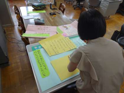 先生たちも,みんなが学校に登校して,楽しく学習を進めるための準備を頑張っていますよ。(国語科「スイミー」の学習の準備をしています)