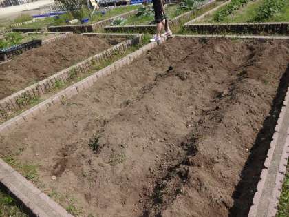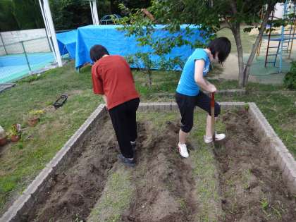 ミニトマトだけではなく,オクラやピーマン,リーフレタスを植える準備をしています。