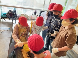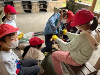 火おこし体験の中で子供達の声が輝いています♪