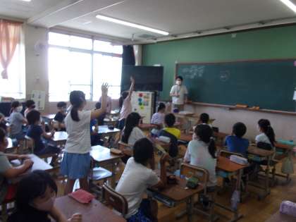 総合的な学習の時間では,「和の心」というテーマで学習を深めていきます。「和ってどんなイメージがありますか?」との問いかけに,「和食!」「魚!」など,次々と意見発表がありました。これから多才なゲストティーチャーの方々をお招きし,お話を伺ったり,調べ学習をしたりして探究学習を進めていきたいと思います。