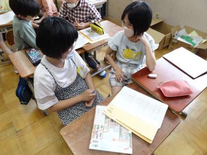 外国語科の学習では,友だちの誕生日を英語で尋ね合う学習をしています。前回の学習で,友だちの誕生日を聞き合いました。同じ誕生月のグループでほしいもののイラストを交えた,バースデイカードを作りました。