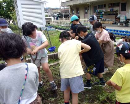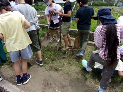 理科の学習で使う畑です。今日は,みんなで協力して,畑の土を耕しました。雑草もきれいに取り除き,スコップで土を掘って柔らかくしました。