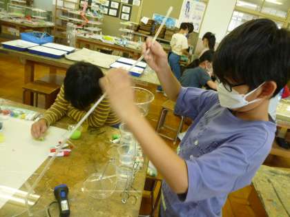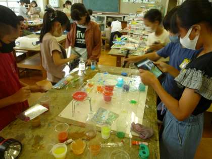 活動中の様子です。「きれい」を見つけて,GIGA端末で撮影しています。