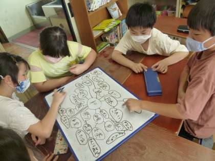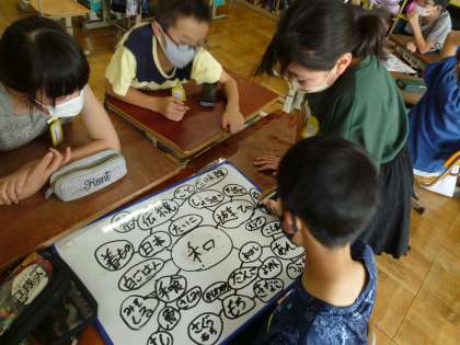 総合的な学習の時間の学習です。「和のこころ」について,グループでイメージを広げています。イメージマップを使って書いていくと,どんどん膨らんでいきました。