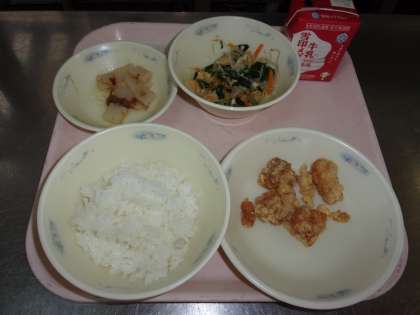 「鶏肉のこはくあげ」は子ども達に人気の献立です!