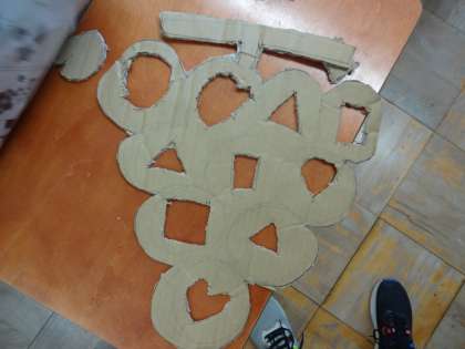 段ボールを切って,太陽の光を地面に移します。
