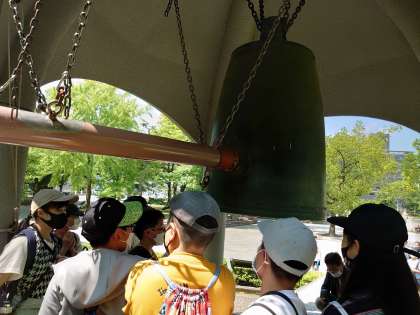 平和の鐘をついています。