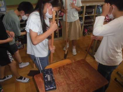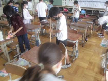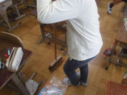 周りの子どもも,ほうきの人が掃きやすいように机やいすを動かしたり「ありがとう。」と声をかけたりする姿が見られました。