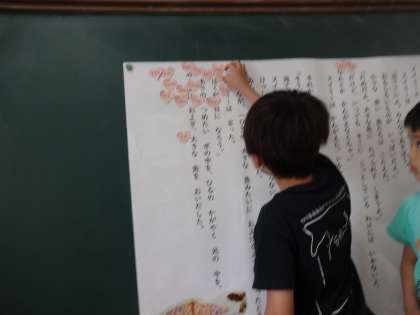 国語科「スイミー」の学習で,お気に入りの一文を友だちと伝え合いました。