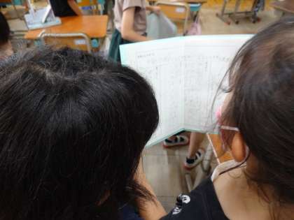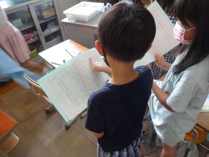 ワークシートを見ずに話したり,自然とジェスチャーをつけてみたりと,たくさんの友だちと話すうちにどんどん話すことが上手になっています。