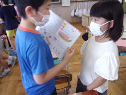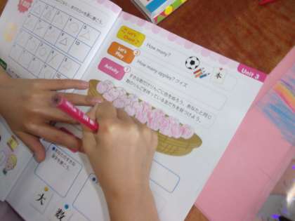 外国語活動の時間に,How many?の数を尋ねる学習をしています。