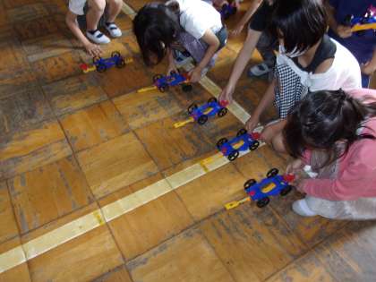 今日は,作った車を使って実験をしました。