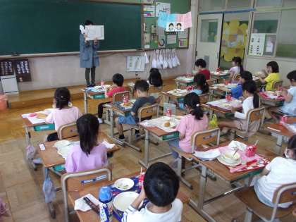 子どもたちは,事前にこのお話を聞いて金曜日の「にしんなす」を心待ちにし・・・さらに今日,おばあちゃんからの手紙をもらって・・・「にしんなす」を食べることにわくわく,どきどき。給食のおわりには,「全部食べた。」「にしんなすがおいしかった。」大絶賛です。給食が苦手な人もとっても頑張っていました。